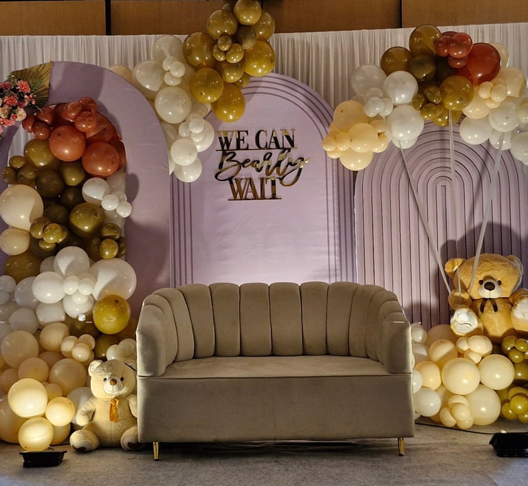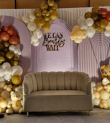 Soft pastel décor, mom-to-be setup, welcome board, floral themes & backdrop styling. Cute, elegant, and full of blessings & memories.